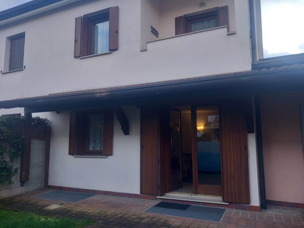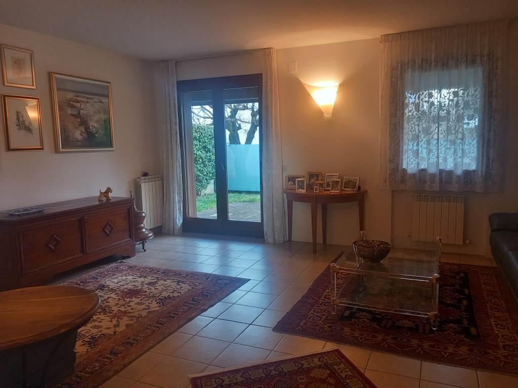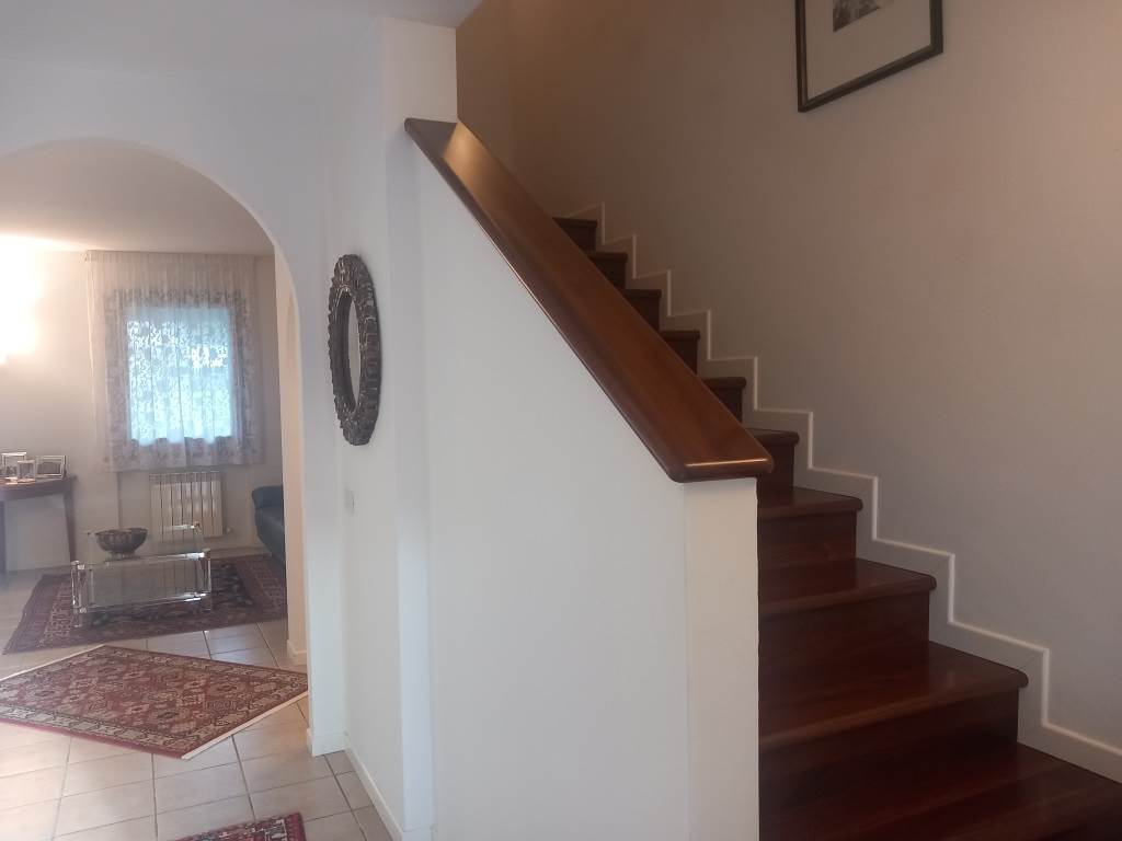 STATO MANUTENTIVO: Villaschiera degli anni 2000, tenuta perfettamente, curata, con piccolo giardino d'ingresso e giardinetto sul retro, di facile manutenzione. Serramenti in legno, con scuretti, tende da sole nelle parti più esposte. Pavimenti in ceramica nella zona giorno e nei bagni, in parquet di legno nelle camere, come nuovo. La scala d'accesso alle camere è in legno, in ottimo stato, le applique alle pareti danno un tocco di classe agli ambienti.