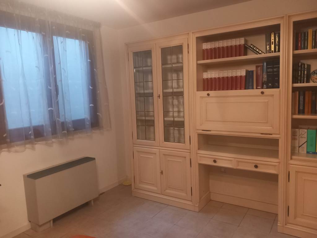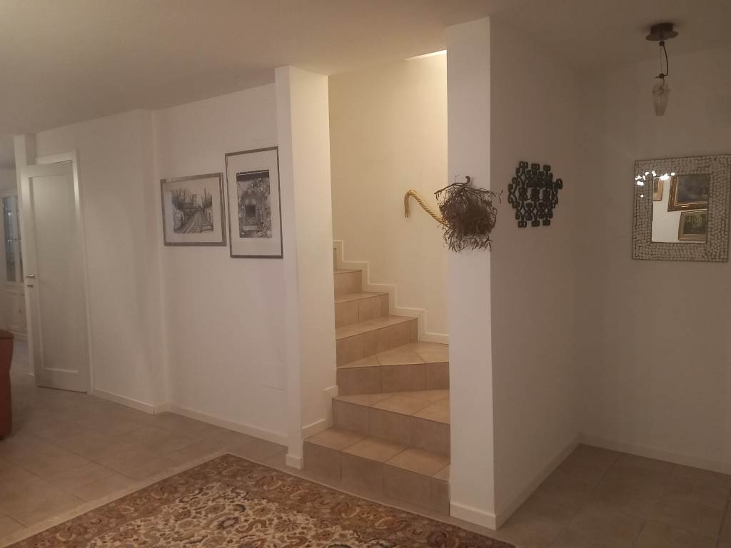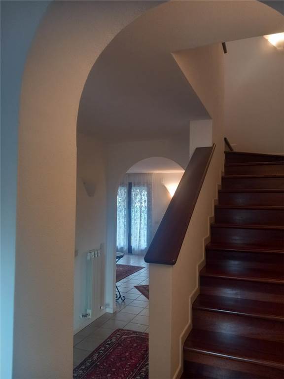 COMPOSIZIONE: Al pianoterra: cucina abitabile, ampio salone soggiorno/salotto con accesso diretto al giardino sul retro,bagno con antibagno/lavanderia in nicchia, elegante accesso alla taverna; al piano superiore camere da letto (matrimoniale, doppia e singola), grande bagno con vasca ed armadio per biancheria bianco (molto comodo), due terrazze (una con tenda da sole); esistente botola d'accesso al sottotetto; taverna: bella grande, asciutta, pulita, riscaldata, anche con elegante caminetto, finestre sulle grandi bocche di lupo, sottoscala chiuso con porta, nicchia chiudibile, pavimenti chiari, altezze interessanti. Accesso pedonale ed accesso carraio motorizzato, con possibilità di lasciare l'auto nel posto pavimentato scoperto, o di metterla in garage. Accesso al garage anche dal giardino sul retro!